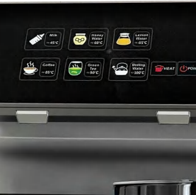 ![]() | 304 Heating Kettle 1. HD touch color screen 2. Hidden bottom bottle 3. Remote control & Touch screen operation 4. 24H long lasting keep warm 5. Built-in storage cabinet 6. With two water kettles |
